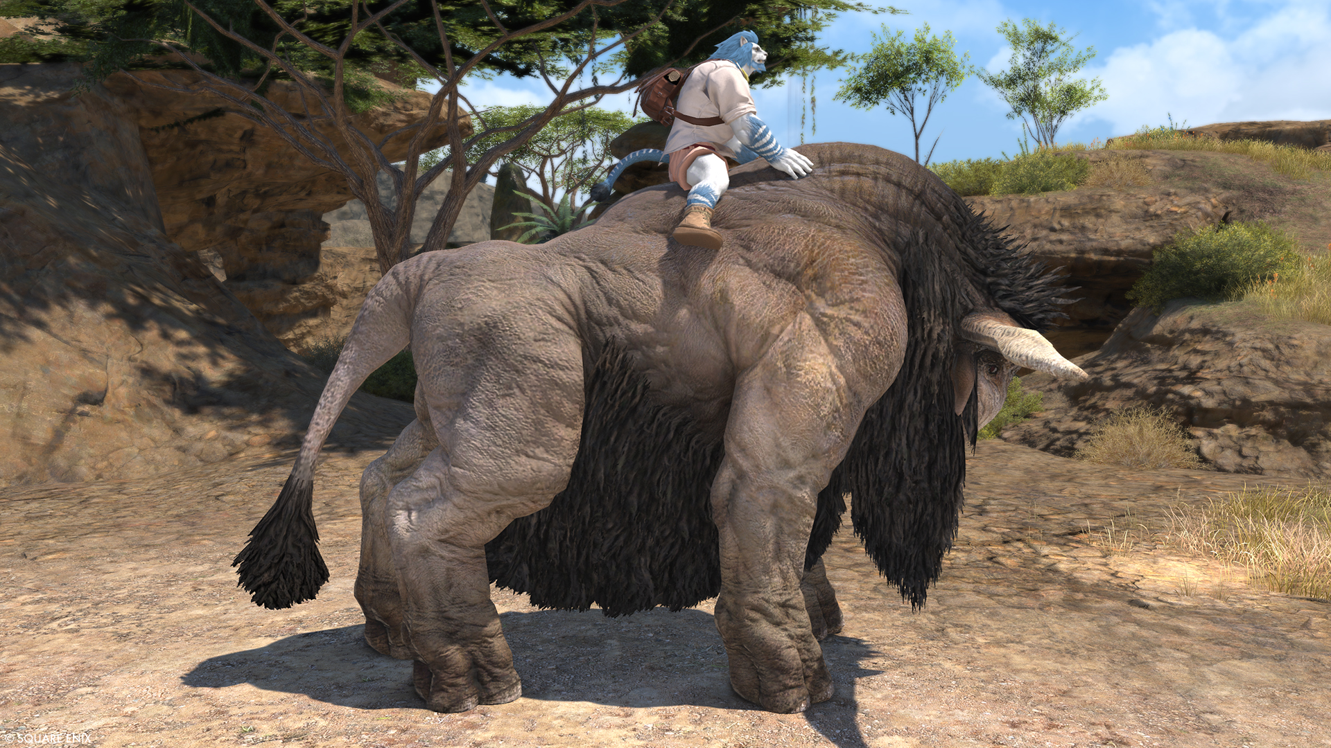 東ラノシアとかにいるバッファローと同じだと思うんですが、とにかくデカい。(ララフェルとかが乗るともう少しサイズは小さくなるのかな?)